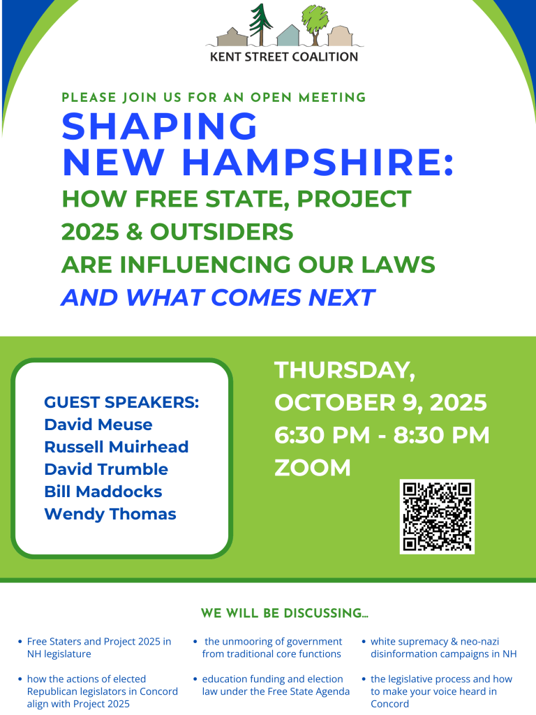 There were plenty of bad bills in 2025 and there will be more in 2026. Experienced legislators and advocates will tackle a variety of subject areas to explore the influence of Free Staters and Project 2025 in our legislature. Some bills are prepared by people/groups outside New Hampshire without the interests of New Hampshire at heart. Watch for actions we all can take.