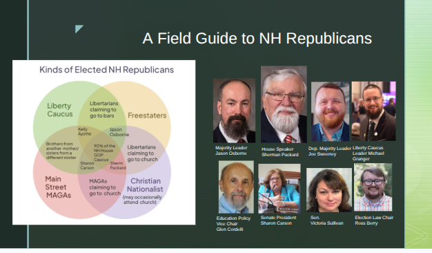 David Meuse talked about intersection of the Free State Project, MAGA, and Christian Nationalism inF the Republican party and how those forces join to promote destructive bills in the New Hampshire legislature.