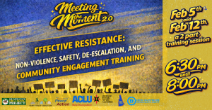 Thursday, February 12 6:30 pm-8:00pm, via Zoom Register HERE Please join Kent Street and our coalition partners for the second in our two-part virtual training that will address the increasingly urgent challenges of effective resistance. Missed Part One? You can still join us for Part 2 on Thursday by registering HERE. If possible, we encourage you to…