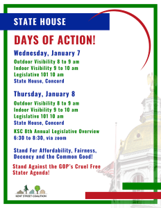 Wednesday, January 7th and Thursday, January 8th State House The House and Senate will be voting on bills held over from last session, many of which aim to further the GOP majority’s dangerous Free Stater agenda. We need folks to show up to protect vulnerable individuals, local communities and fundamental rights. It is time to…